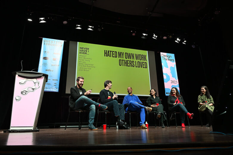 Day 2 was packed with as much inspiration as the first with keynotes by Tina Roth Eisenberg and Eleni Beveratou and talks by Lauren Scully & Brian Studak, Min Lew, Catalina Estrada, Zipeng Zhu, Jay Demetillo, Dorothéa Bozicolona-Volpe, Krys Blackwood, Hajj Flemings, ending the day with a Keynote by Stefan Sagmeister. The day also featured a panel discussion on collaborative design workflows and a Never Have I Ever session with Stefan Sagmeister, Min Lew, Forest Young, Eleni Beveratou and Tina Roth Eisenberg hosted by Julian Brown RGD.