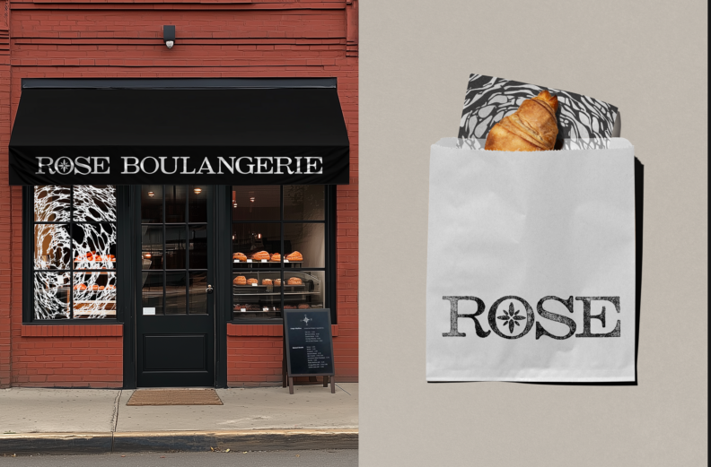 "For Rose Bakery, we crafted an identity that honours the bakery’s deep roots in place and tradition. Tasked with the client’s vision of a compass logo, we transformed this challenge into a design of minimalist shapes inspired by dough-scoring marks that subtly evoke both a compass and the bakery’s artisanal spirit." shares, Carolane Godbout RGD.