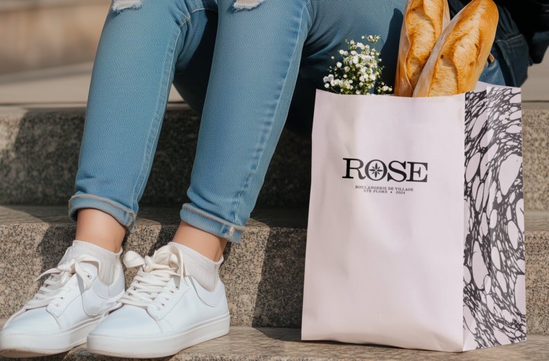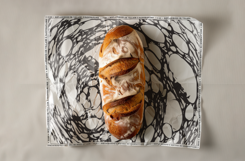"The tagline, "Guided by Taste, Rooted in the Land," reflects not only the baker’s commitment to local ingredients and ancestral methods but also establishes Rose Bakery, nestled in the village of Sainte-Flore, as a destination in itself. Textured patterns created by inking and rolling bread slices lend the brand a handcrafted authenticity, celebrating its sense of place and heritage." highlights, Carolane Godbout RGD.